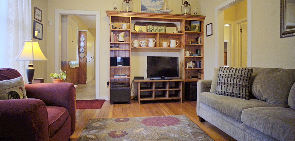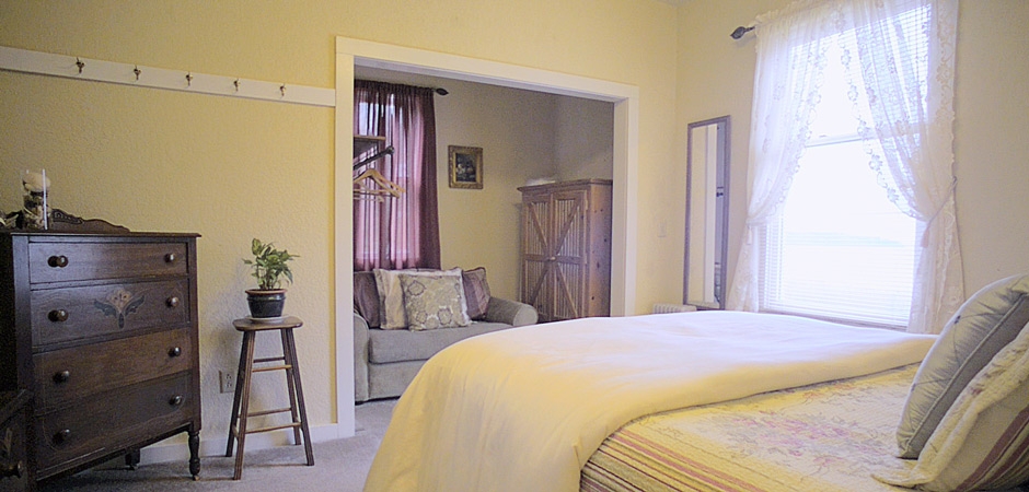 Nestled inside of Guest House One, this large suite features a bedroom, full private bath, sitting room with fireplace and a spacious kitchen. This is a perfect space for a couple or small family and, using the sleeper sofa, can accommodate up to three people. Note that the Suite is not a separate house but a part of Guest House 1. It comprises one of that house's 3 bedrooms and 3 baths and includes the kitchen and sitting room. When the Suite is occupied, the rest of the house is closed and not available for use.